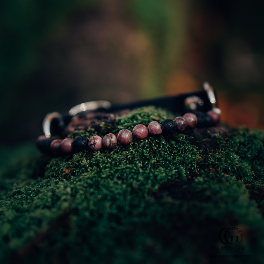 Rhodonite & Lava Rock - Best for: Grief, emotional trauma, healing and recovery, especially for rescued and adopted pets.