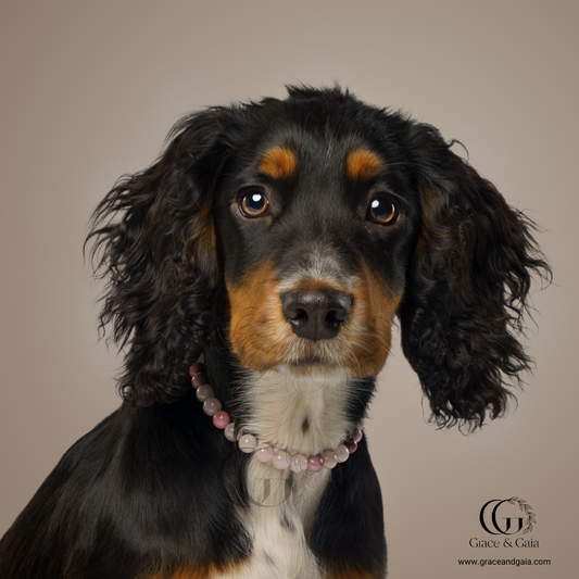 At Grace and Gaia, we understand that every pet is unique and sometimes requires a personalised touch. That's why we offer custom malas designed specifically for your pet's needs. Share their challenges with us, and we'll create a one-of-a-kind piece that supports their well-being and fosters a happier, healthier life.