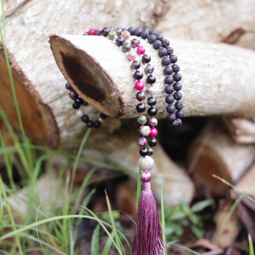 The number 108 is sacred in spiritual traditions. It represents wholeness and completion. The beads symbolize the journey towards self-realisation, with each one marking a step closer to your spiritual goals. As you move through the 108, you are reminded of the interconnectedness of the universe, your place in it, and the divine energy that flows through you.
